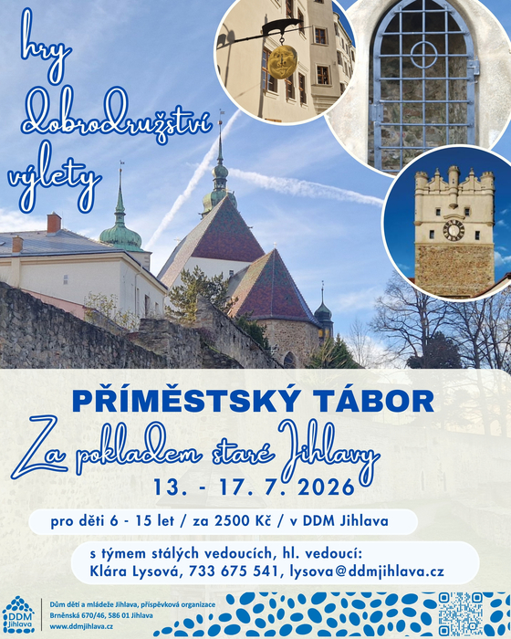 Příměstský tábor na téma "Za pokladem staré Jihlavy". Program tábora zahrnuje všeobecné táborové činnosti (hry, výlety, soutěže, …). Jeden den tábora je věnovaný celodennímu výletu.